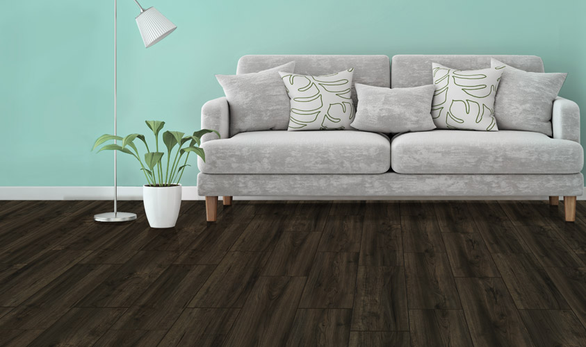 El piso de cerámica olmo oscuro se puede utilizar en entornos tales como salas de estar, habitaciones y cocina.